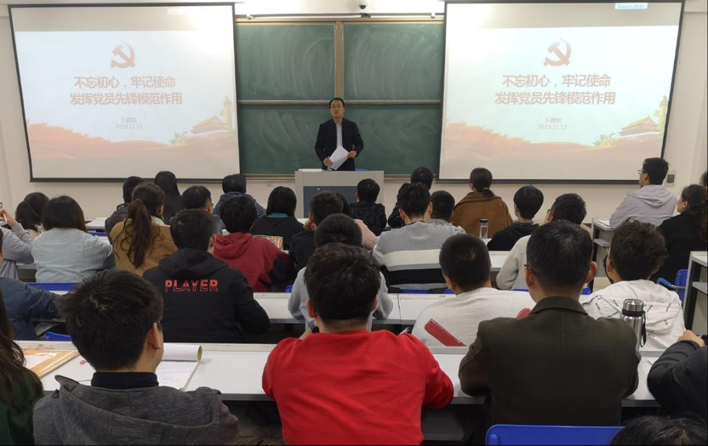 11月12日,我院本科生第二党支部在北区22号教学楼101室召开第80期党校培训开班仪式暨党课第一讲,党总支副书记王建国为第二党支部学生党员、党员发展对象候选人及入党积极分子开授题为《不忘初心、牢记使命,发挥党员模范先锋作用》党课。