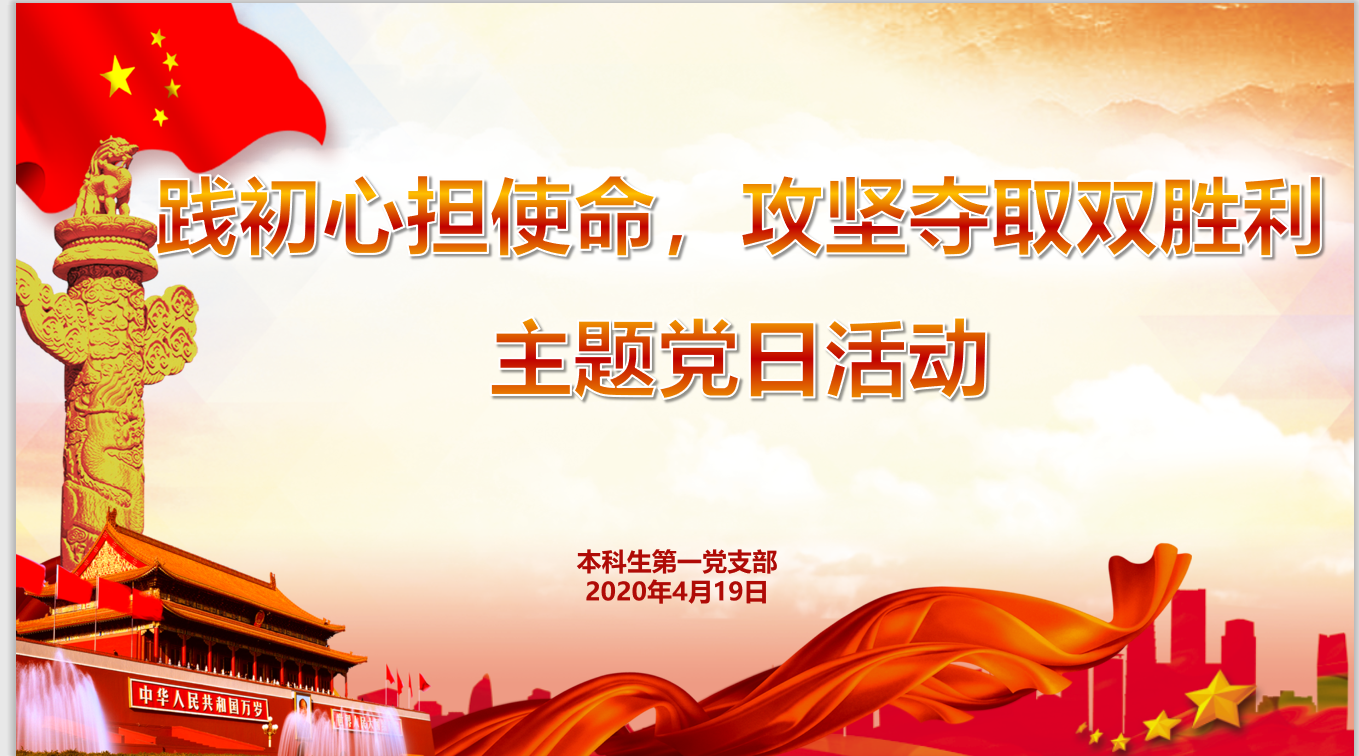 为深入学习贯彻习近平总书记关于统筹推进疫情防控和经济社会发展工作的重要指示精神,组织动员各级党组织和广大党员在奋力夺取疫情防控和经济社会发展的双胜利中当先锋、作表率,近日信息与电气工程学院本科生第一党支部开展了“践初心担使命,攻坚夺取双胜利”主题党日活动。