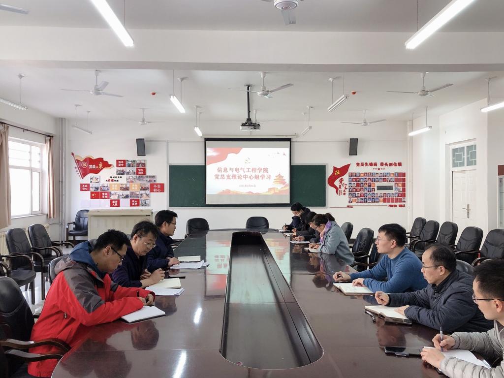 2月25日,信息与电气工程学院党总支理论学习中心组召开会议,集体学习习近平总书记在党史学习教育动员会上的讲话、《人力资源社会保障部 教育部关于深化高等学校教师职称制度改革的指导意见》和教育部关于印发《关于新时期加强高等学校教师队伍建设的意见》的通知。学院班子成员、党总支委员、各系主任参加会议。