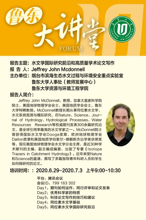 鲁东大讲堂丨高质量学术论文写作和水文学国际研究前沿(系列报告)