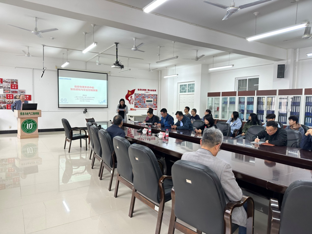 11月3日到4日,上海大学机电工程与自动化学院教授,国家科技部复杂网络化系统智能测控与应用学科创新引智基地主任,上海市电站自动化技术重点实验室主任,上海领军人才,国家重点研发计划项目首席科学家费敏锐教授应邀到我校信息与电气工程学院进行学术交流,分别作了《信息物理系统中的智能感知与安全控制探索》学术报告和《国家自然科学基金项目申报一点体会》经验报告。