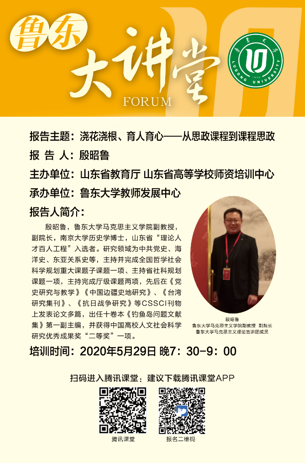 鲁东大讲堂丨浇花浇根、育人育心——从思政课程到课程思政【5月29日19:30】