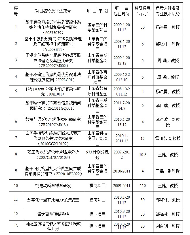 本研究方向现有研究人员9人,其中教授2人,副教授3人,具有博士学位人员5人,具有硕士学位4人(在读博士3人),研究团队学历职称结构合理。现在承担国家自然科学基金3项,山东省自然科学基金1项,教育厅科研基金2项,与企业合作项目3项。现在主持国家自然科学基金项目“基于复杂网络的异类多智能体系统的协作控制和鲁棒性研究”和山东省教育厅科研基金“移动Agent分布协作的复杂性研究”等项目研究,发表科研论文80余篇,研究成果曾获山东省高等学校优秀科研成果奖二等奖。通过几年的建设,本研究方向一定会成为省内的特色研究方向,研究成果一定会对加强国内城市交通协同控制、减少城市交通拥堵具有很重要的指导作用。