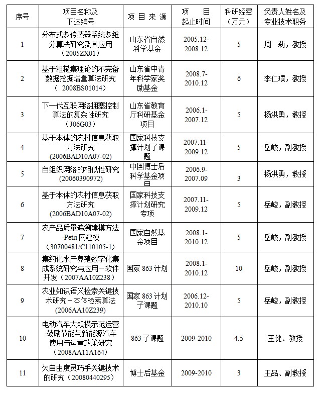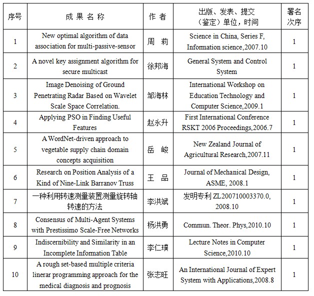 目前,本研究方向的主要成员4人,其中有教授1名,副教授2名,讲师1名,其中3人具有博士学位。团队成员一直在从事数据挖掘,智能信息处理等领域的研究,目前完成及承担包括国家863项目、国家自然科学基金、山东省中青年科学家奖励基金在内的省部级及以上课题15项,在《 European Journal of Operational Research 》、《Lecture Notes in Artificial Intelligence》 、《计算机研究与发展》等国内外重要刊物和会议发表学术论文发表相关论文150余篇,其中60余篇被SCI、EI检索,出版专著1部,曾获“天津大学优秀博士论文”(2005)、“山东省高校优秀科研成果(自然科学)三等奖”(2006),“第五届烟台市青年科技奖”(2007),“烟台市富民兴烟先进个人”(2008)、“烟台市第十二届自然科学优秀学术论文二等奖”(2009),“英国365上市公司优秀硕士论文指导教师奖”(2011)等荣誉称号。