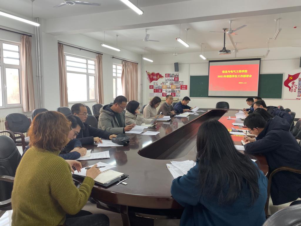 为落实学校《关于做好2021寒假学生教育管理工作的通知》文件精神,切实做好学院学生寒假安全工作,信电学院于1月3日召开期寒假学生工作部署会议,党总支副书记刘江华主持,学院全体班主任参加。