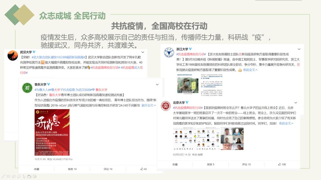 本次活动作品面向全院广泛征集作品,大赛举办期间,同学们积极投稿参与,用作品展示出鲁大学子在特殊时期团结一致抗击疫情的强大凝聚力,最终由评委组按照公平公正原则进行匿名投票,经过两轮筛选,共十一份作品脱颖而出。其中,袁建强和刘士琪的作品分别获得海报组和ppt组一等奖。