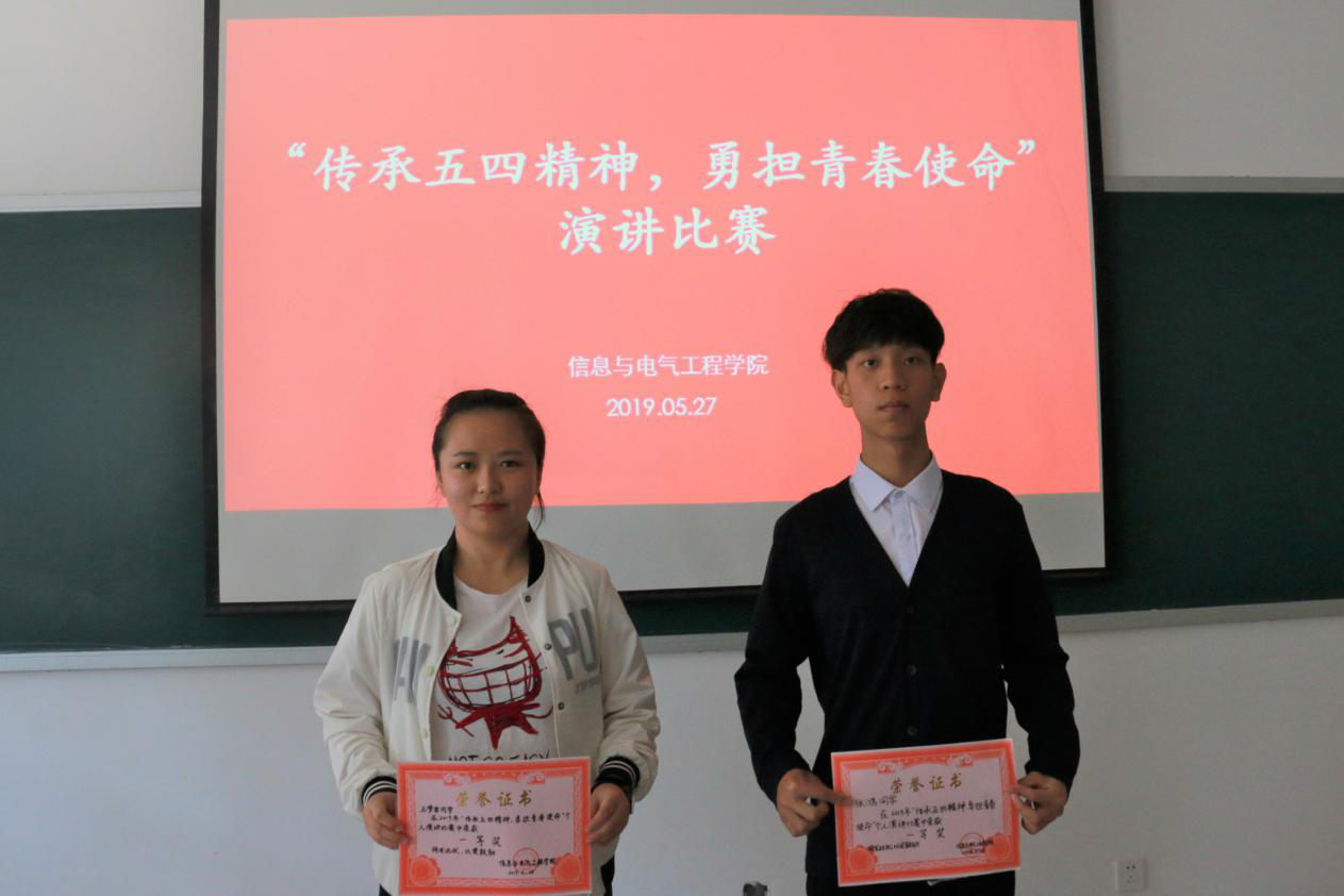 5月27日下午,我院在北区22号教学楼304室举办主题为“传承五四精神,勇担青春使命”的演讲比赛决赛,演讲比赛从5月初开始,经过激烈的角逐,最终有15名同学参加决赛。