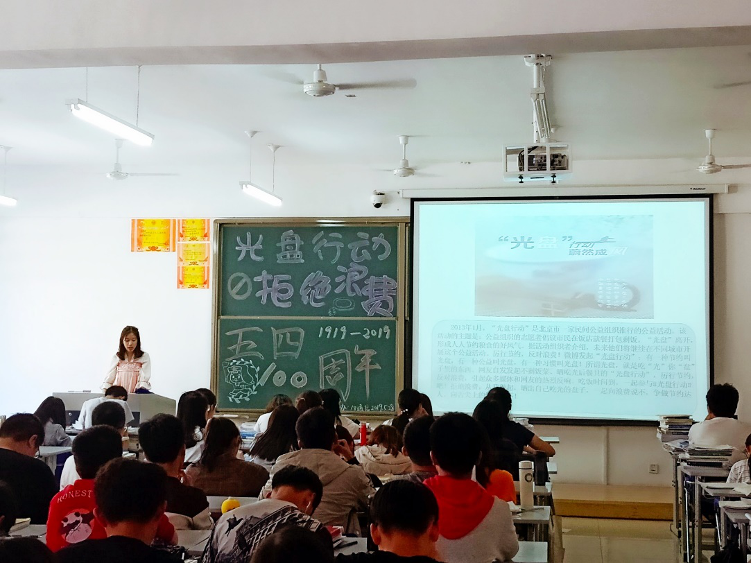5月24日,我院心理与权益部组织各班团支书召开“光盘行动”动员大会,各班级积极响应。5月28日,我院张贴“光盘行动”主题海报,同学们积极签署《光盘承诺书》。各班级纷纷拍摄微视频,制作板报和PPT进行宣传,举办“光盘行动”主题团日活动,全院学生积极参与到活动中来。