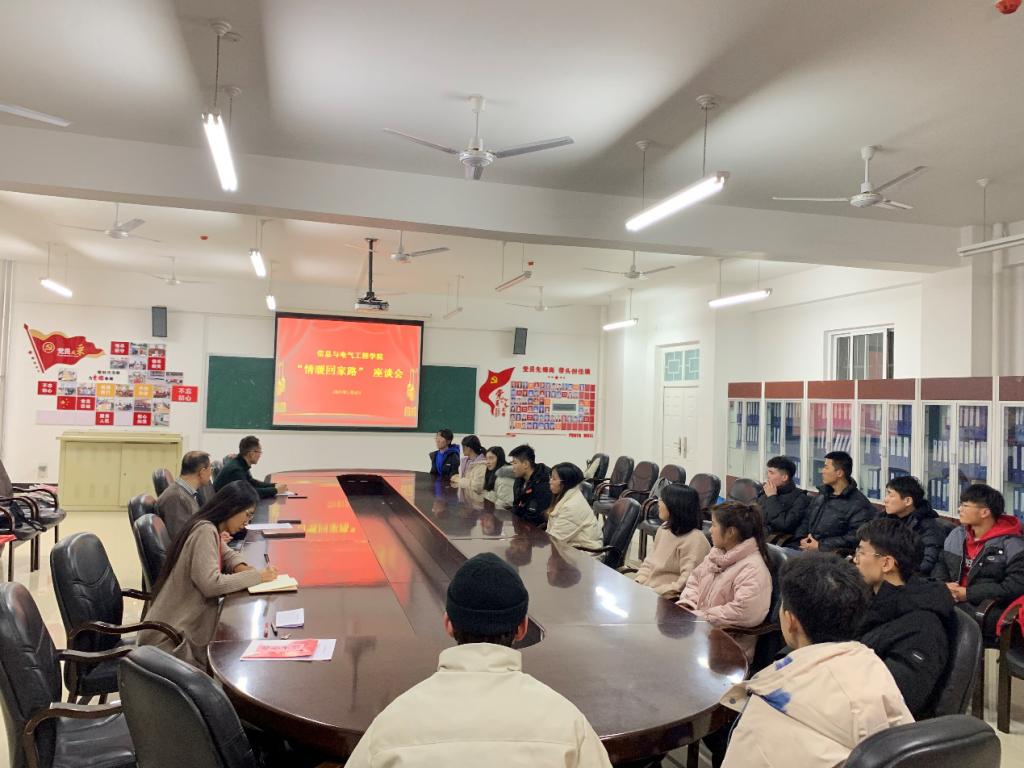 2021年1月4日,信息与电气工程学院举办“情暖回家路”学生座谈会,党总支副书记、辅导员、家庭困难学生代表参加座谈会。