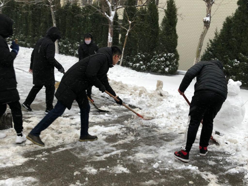 8日早上5时45分,同学们纷纷拿着扫雪工具来到了分配好的场地前,开始清扫活动。虽然积雪比较厚,天气比较冷,但这并没有影响参与者的热情和工作效率。经过两个多小时的艰苦努力,北20、北21、北22教学楼周围及两条主干道的积雪全部清理完毕。